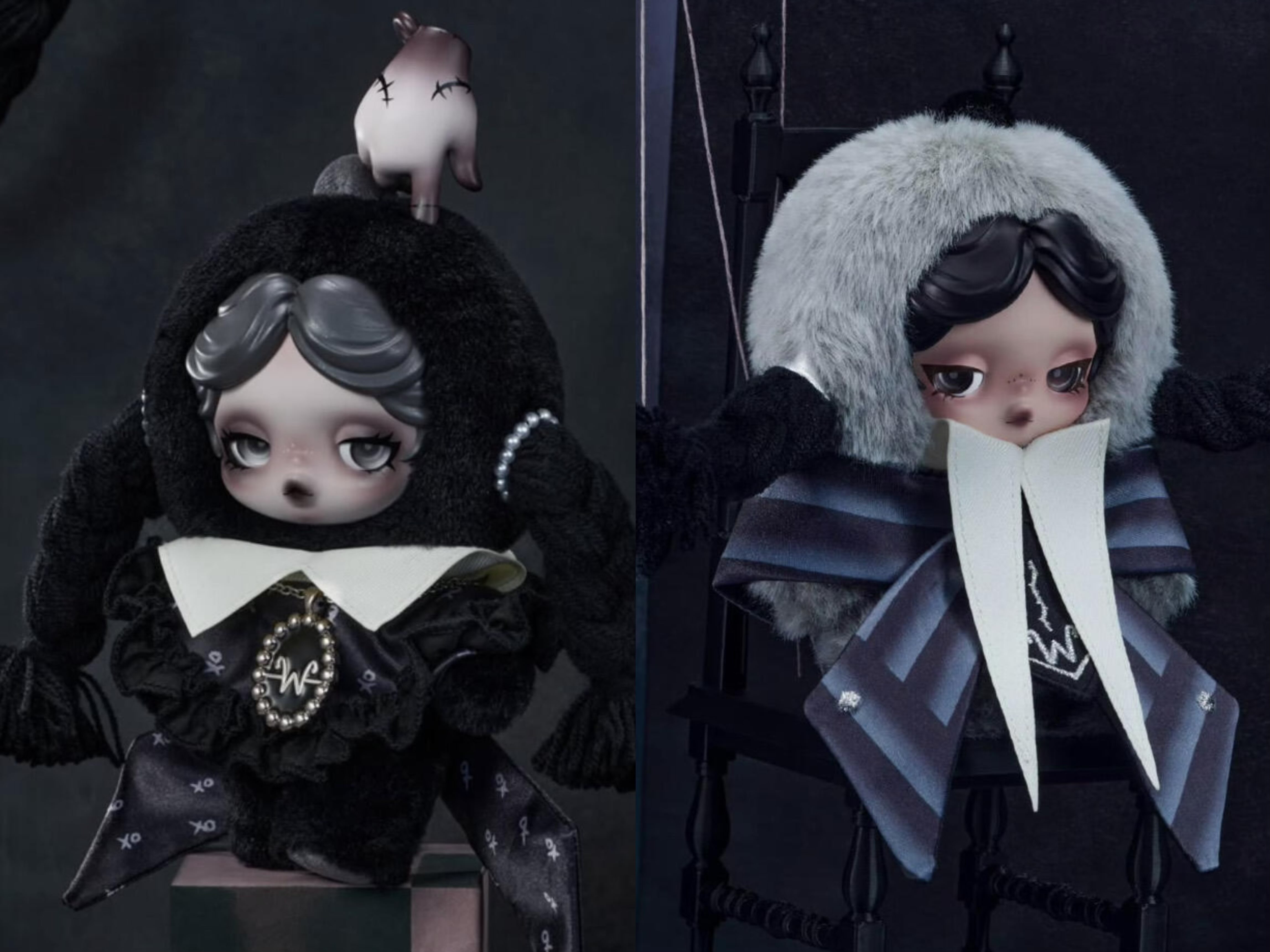 泡泡玛特联名美剧《星期三》纽约限定款(左)、全球款(右)